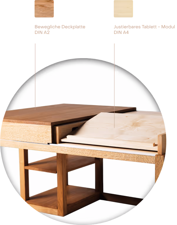 Die dadurch möglichen Bewegungen und Zustände des Tisches machen diesen anpassungsfähig und individuell einsetzbar.