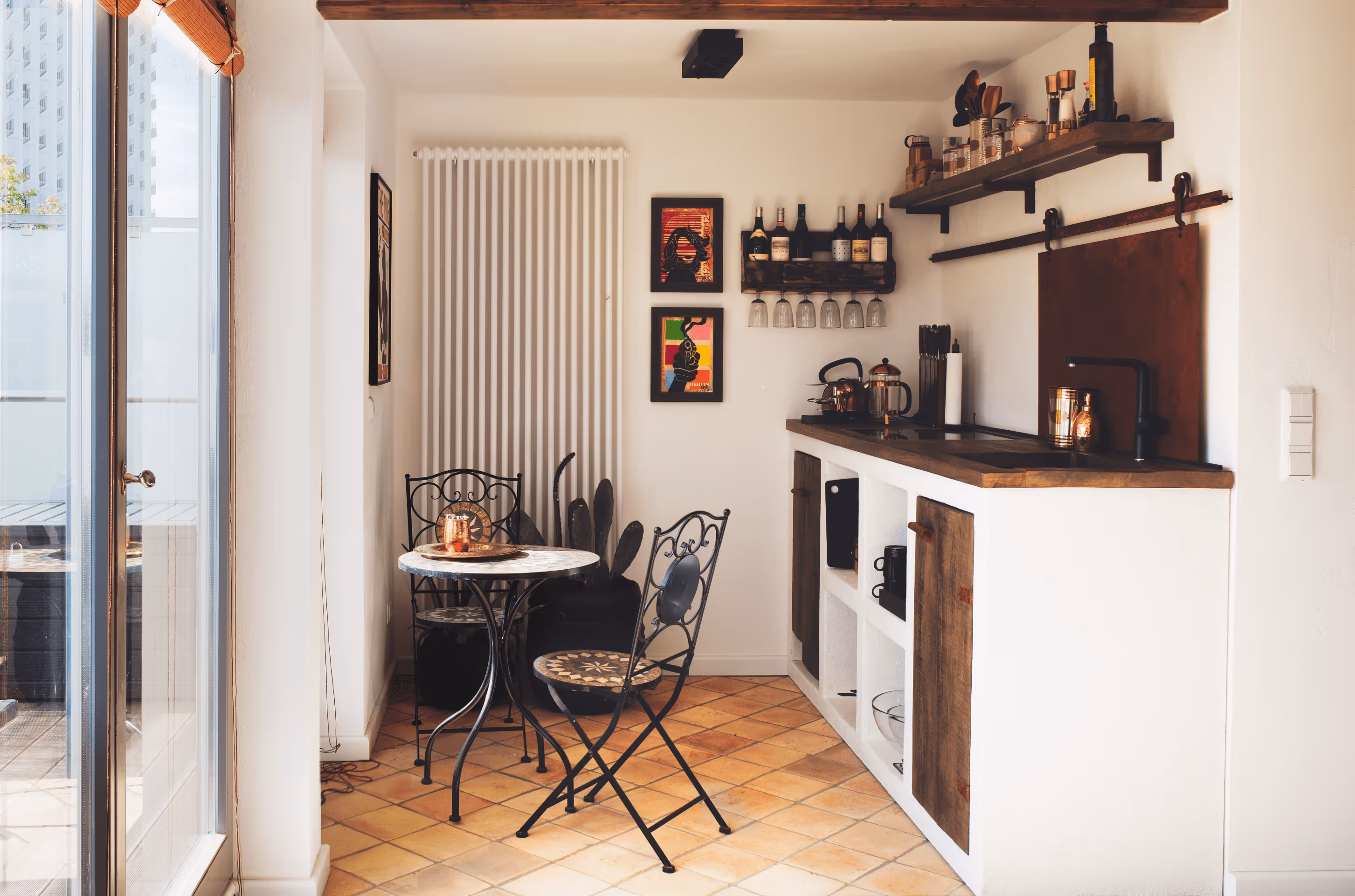 Diese Küchenzeile entstand im Rahmen einer Auftragsarbeit. Ziel der Arbeit war, Entwurf und Ausführung eines rustikal, mediterranen Küchenarrangements in einer Ferienwohnung.