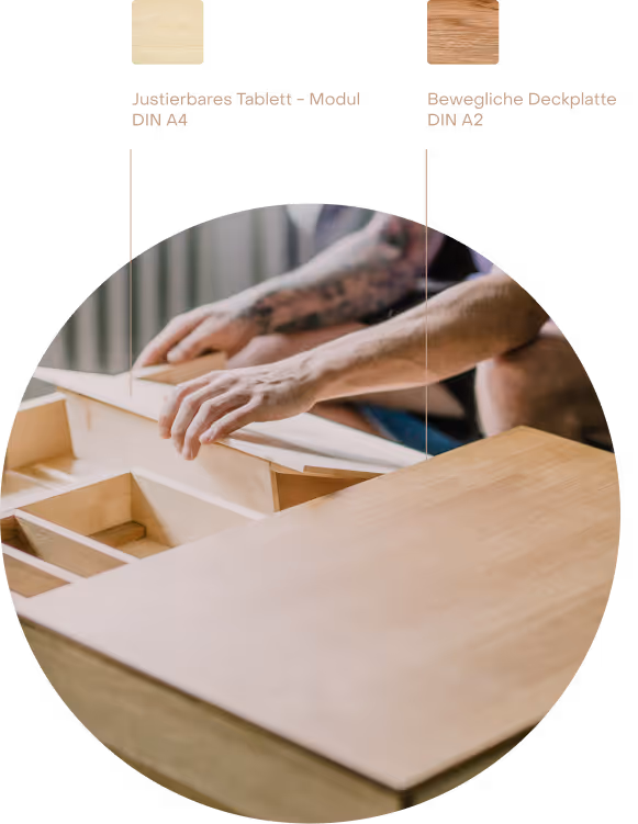 Die dadurch möglichen Bewegungen und Zustände des Tisches machen diesen anpassungsfähig und individuell einsetzbar.