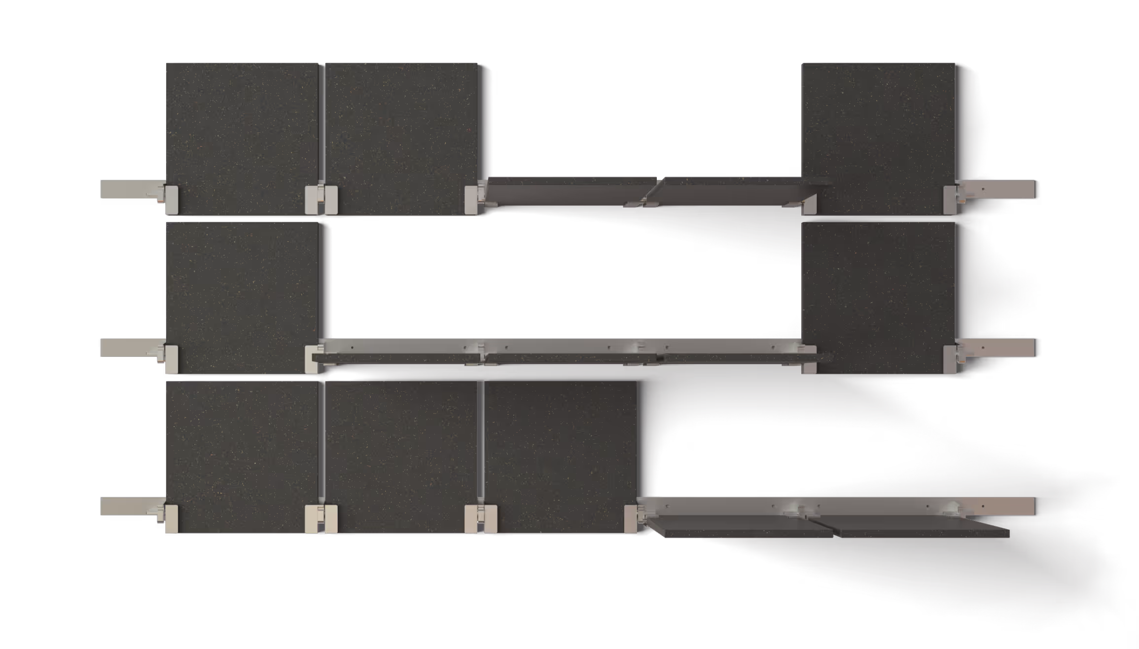 Die Wandlung beinhaltet dabei nicht nur die Änderung der Form, sondern auch der Funktionen. Jedes der Elemente der Tischplatte ist beweglich und verändert sich proportional zu den Anschließenden.